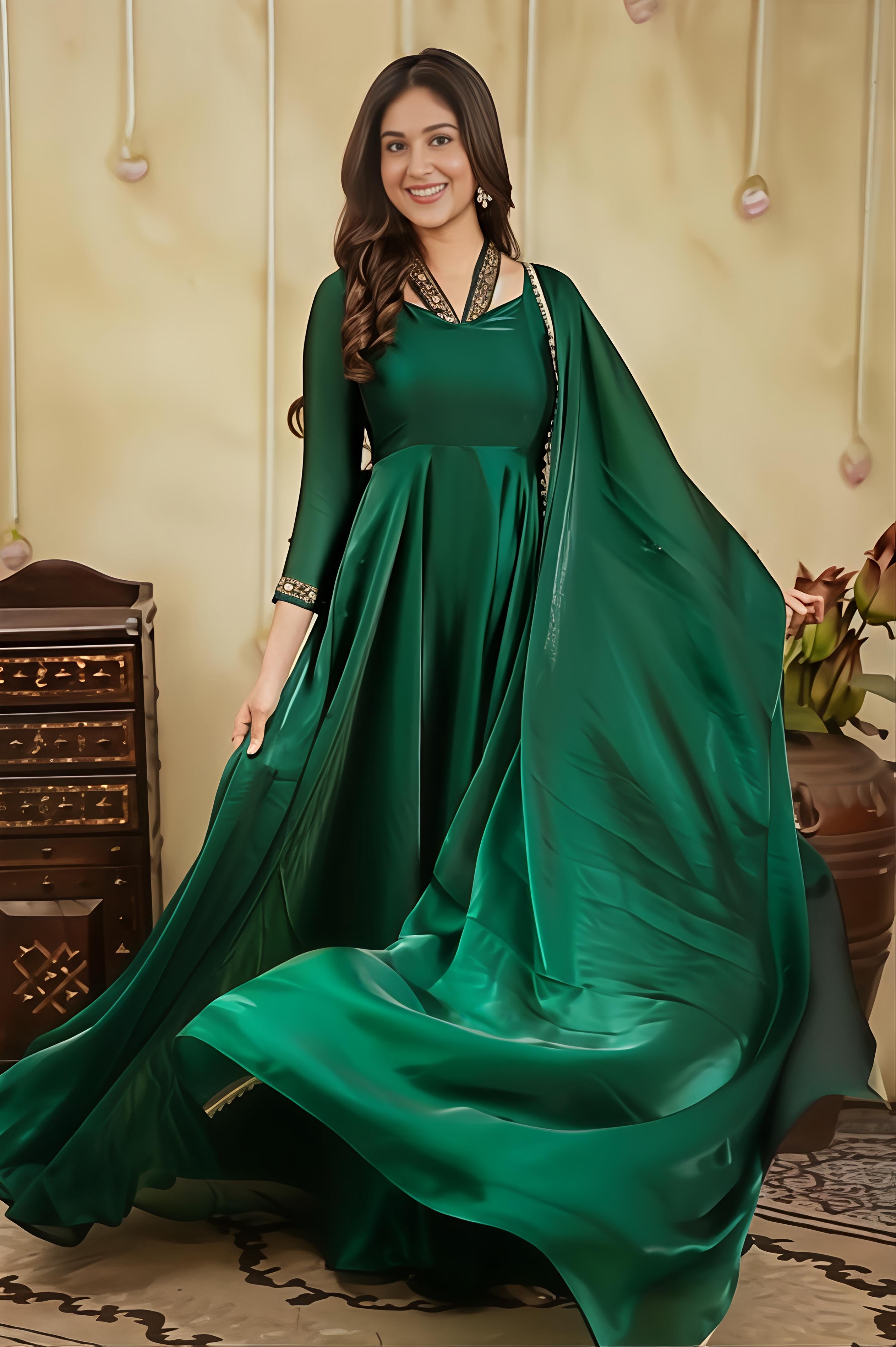 A Graceful Emerald Green Anarkali Crafted In Luxurious Space Silk A Graceful Emerald Green Anarkali Crafted In Luxurious Space Silk